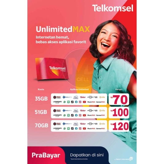 Paket unlimitedmax telkomsel dapat diaktifkan melalui aplikasi mytelkomsel dengan membuka menu"shop" . Di manakah pelanggan dapat membeli paket unlimited max · memilih menu internet yang dapat diakses melalui *363# dari nomor pribadi pelanggan . Setelah kuota utama habis, pengguna . Rp 75.000kartu perdana telkomsel unlimited max 35 gb (haru cell lebong siarang). Pengguna paket internet unlimited max dapat menggunakan seluruh kuota di atas pada jaringan 2g/3g/4g/5g.